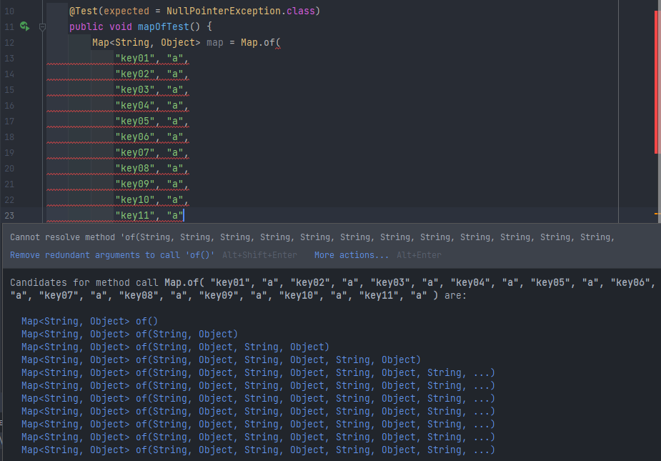 Map.of()에는 개수 제한이 있으므로, 11개 이상의 Map을 초기화 하고 싶다면 Map.ofEntries()를 사용해야 한다.