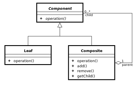 클라이언트 입장에서는 전체나 부분이나 모두 동일한 컴포넌트로 인식할 수 있는 계층 구조를 만든다. (Part-Whole Hierarchy)